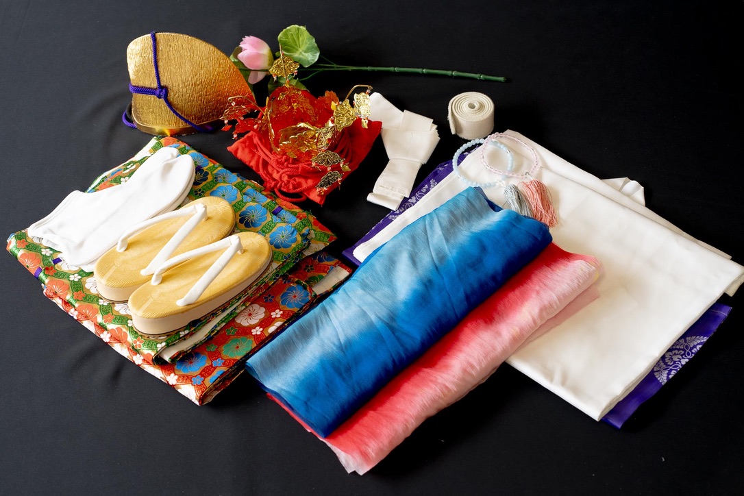 冠・金襴・襦袢・マジックベルト・腰紐・へこ帯・袴・花・念珠・草履・足袋
