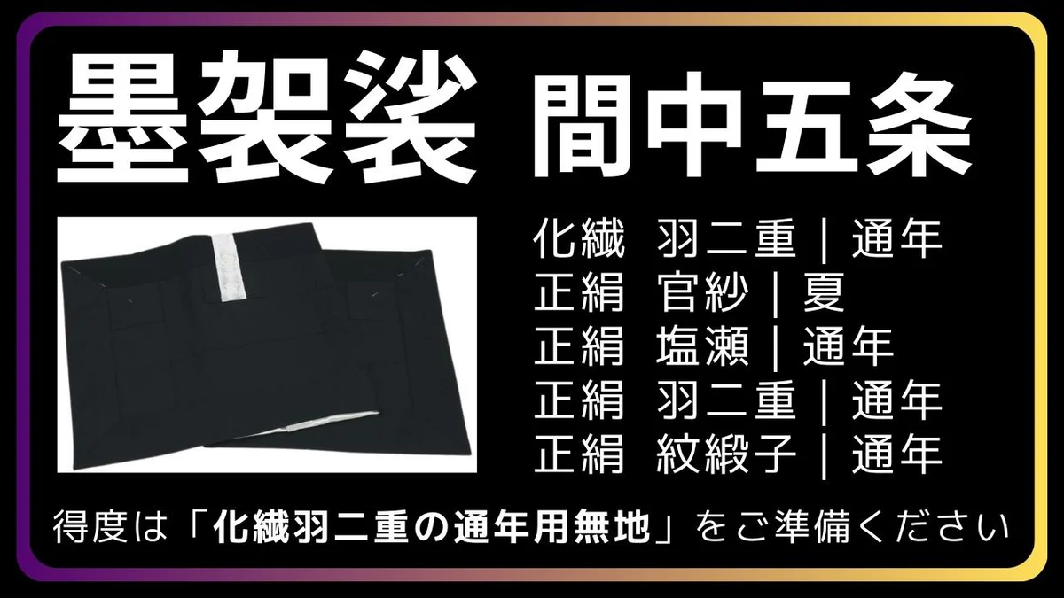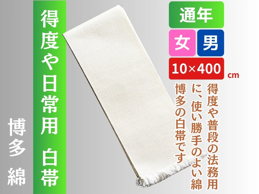 たとえば白帯はマジックベルト式ではなく、通常の帯を使用します。また、五条袈裟や輪袈裟は無地(墨袈裟)を着用する決まりがあります。